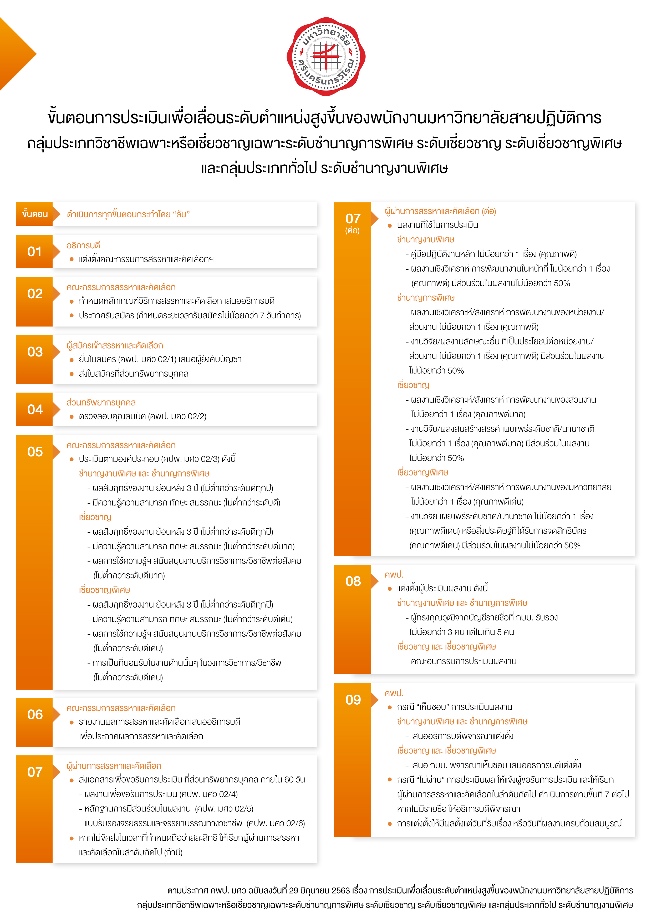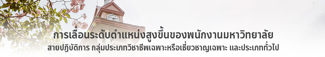 การประเมินเพื่อเลื่อนระดับตำแหน่งสูงขึ้นของพนักงานมหาวิทยาลัยสายปฏิบัติการ กลุ่มประเภทวิชาชีพเฉพาะหรือเชี่ยวชาญเฉพาะ ระดับชำนาญการพิเศษ ระดับเชี่ยวชาญ ระดับเชี่ยวชาญพิเศษ และกลุ่มประเภททั่วไป ระดับชำนาญงานพิเศษ