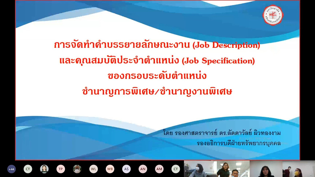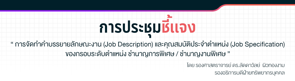 เรื่อง การจัดทำคำบรรยายลักษณะงาน (Job Description) และคุณสมบัติประจำตำแหน่ง (Job Specification)