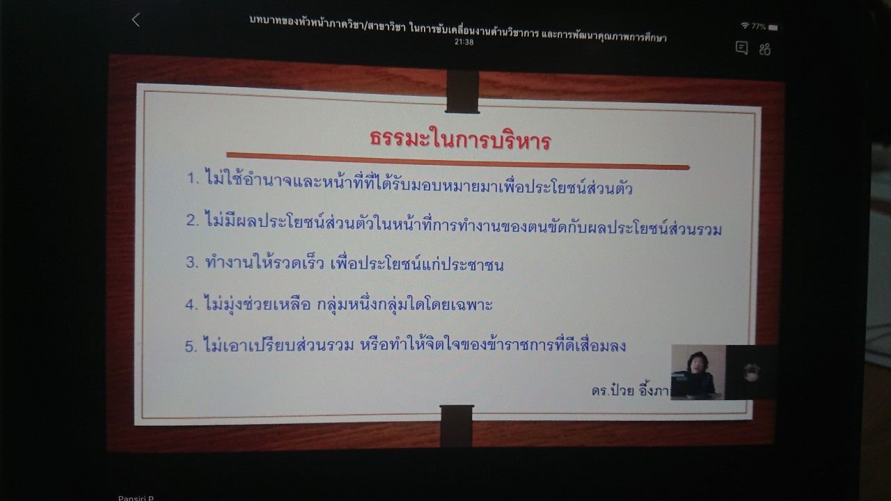 หัวข้อที่ 2 : บทบาทของหัวหน้าภาควิชา/สาขาวิชา ในการขับเคลื่อนงานด้านวิชาการ และการพัฒนาคุณภาพการศึกษา ในวันที่ 12 มิถุนายน 2563