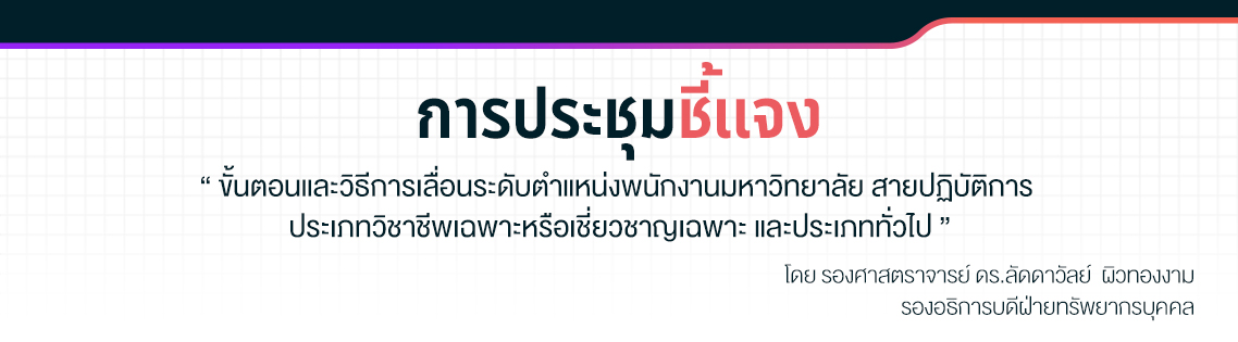 2. การเลื่อนระดับตำแหน่งต้องเลื่อนตามลำดับคือระดับชำนาญการ ระดับชำนาญการพิเศษ ระดับเชี่ยวชาญ และระดับเชี่ยวชาญพิเศษ ทั้งนี้ การยื่นขอในระดับชำนาญการพิเศษ ระดับเชี่ยวชาญ และระดับเชี่ยวชาญพิเศษ จะต้องผ่านการสรรหาและคัดเลือกตามกรอบระดับตำแหน่งที่มหาวิทยาลัยเปิดรับ และต้องมีผลงานที่แสดงความเป็นผู้ชำนาญการพิเศษ ผู้เชี่ยวชาญ และผู้เชี่ยวชาญพิเศษ ตามที่กำหนดไว้ใน ประกาศมหาวิทยาลัยศรีนครินทรวิโรฒ เรื่อง หลักเกณฑ์และวิธีการเลื่อนระดับตำแหน่งสูงขึ้นของพนักงานมหาวิทยาลัยสายปฏิบัติการประเภทวิชาชีพเฉพาะหรือเชี่ยวชาญเฉพาะ และประเทททั่วไป ลงวันที่ 20 กันยายน 2562 |